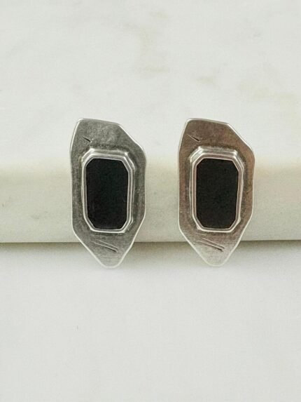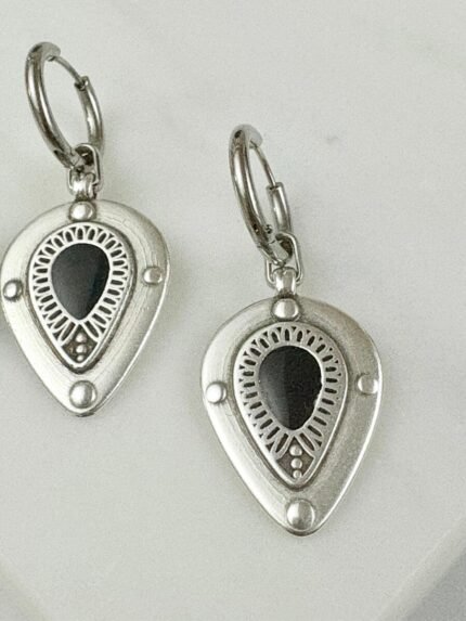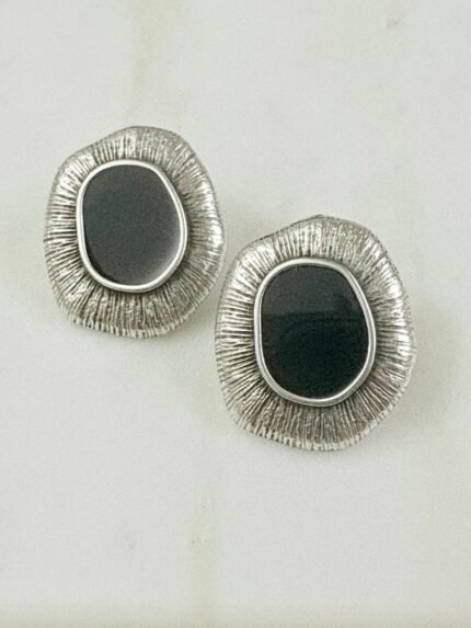 Vintage Ασημί Σκουλαρίκια Με Μαύρο Σμάλτο