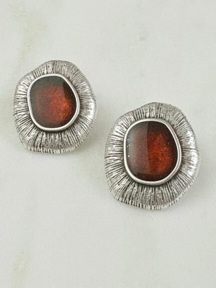 Vintage Ασημί Σκουλαρίκια Με Καφέ Σμάλτο