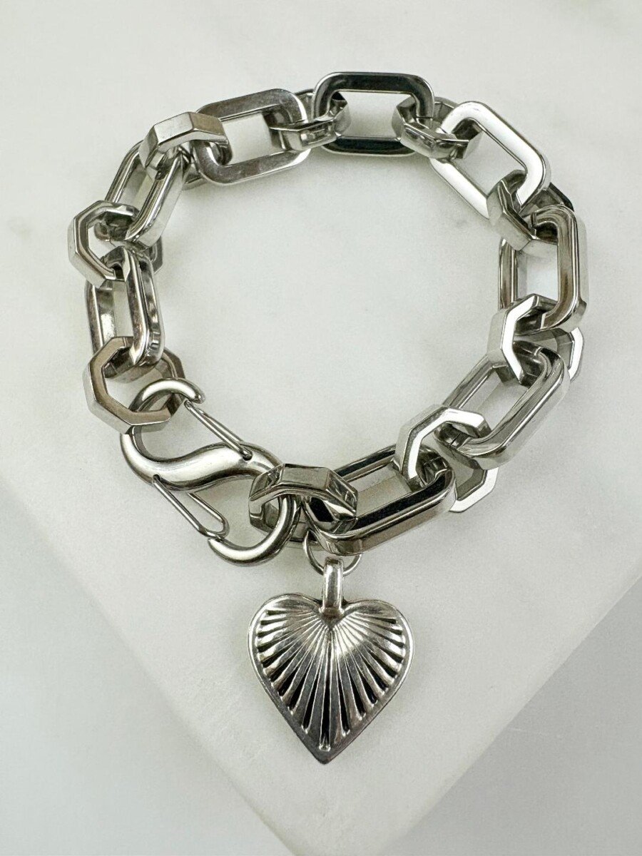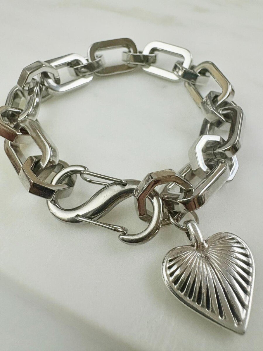 Εντυπωσιακό Βραχιόλι Με Χονδρή Αλυσίδα Και Καρδιά 30,00 €