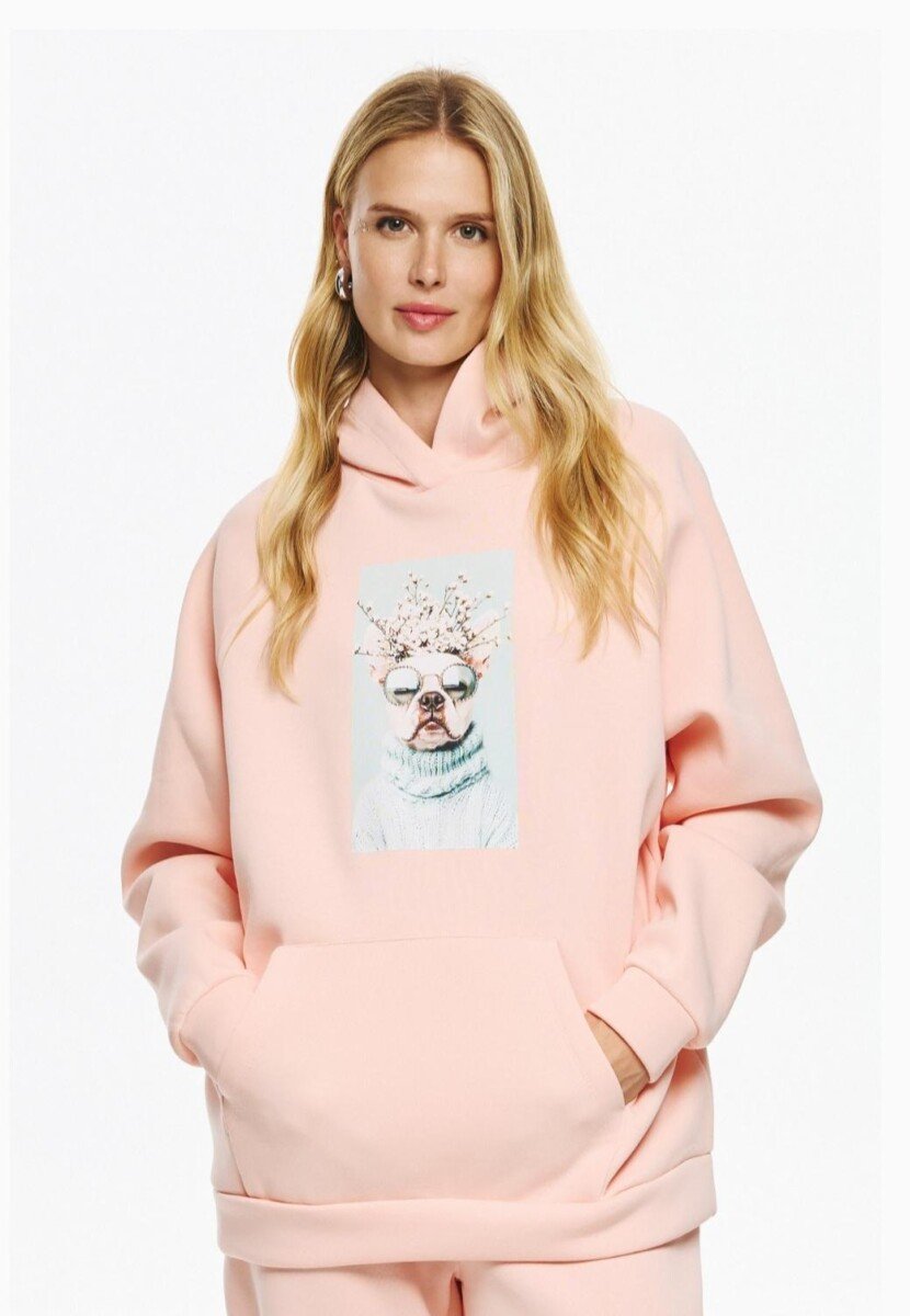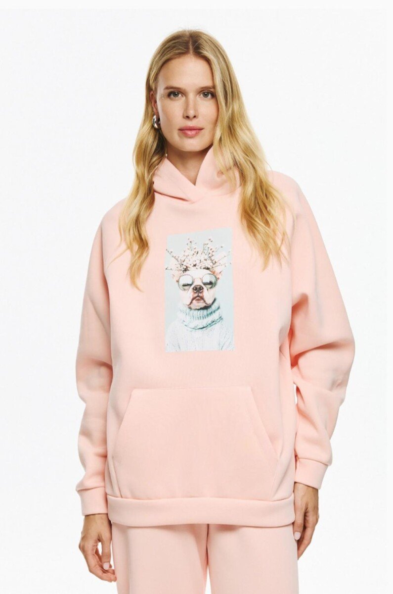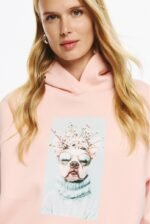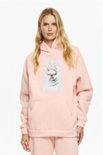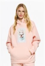 Φούτερ με κουκούλα σε φαρδιά γραμμή. Στο μπροστινό μέρος διαθέτει τσέπη καγκουρό και ιδιαίτερη στάμπα σε παστέλ αποχρώσεις.
