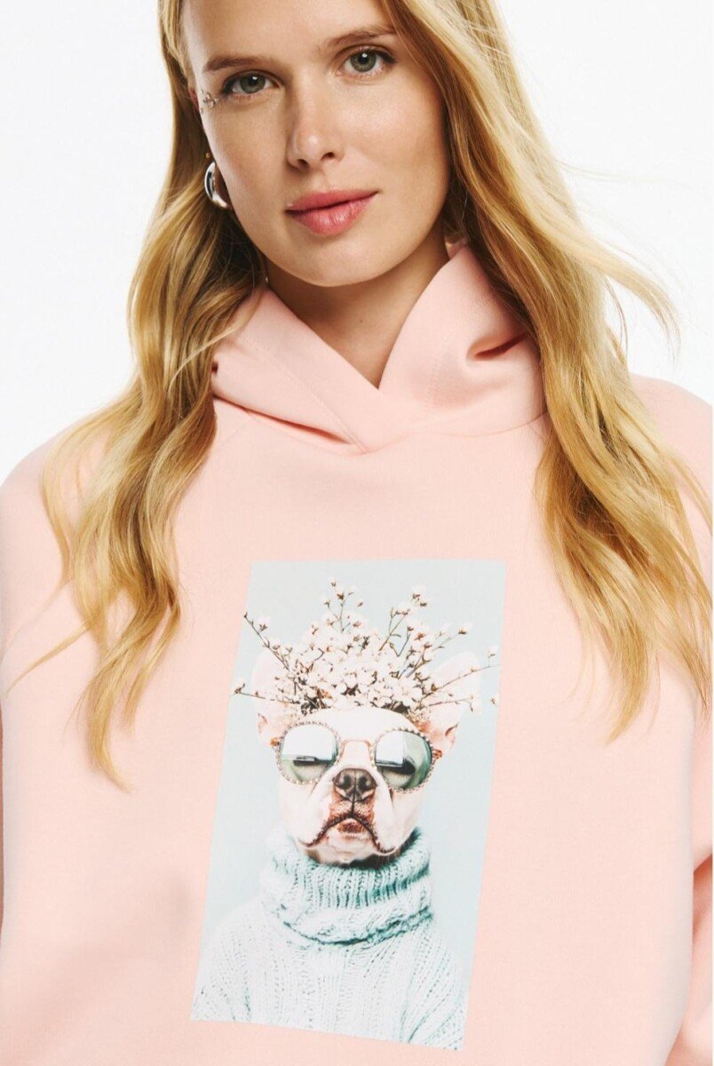 Φούτερ Μπλούζα με Σκύλο με Λουλούδια και Γυαλιά