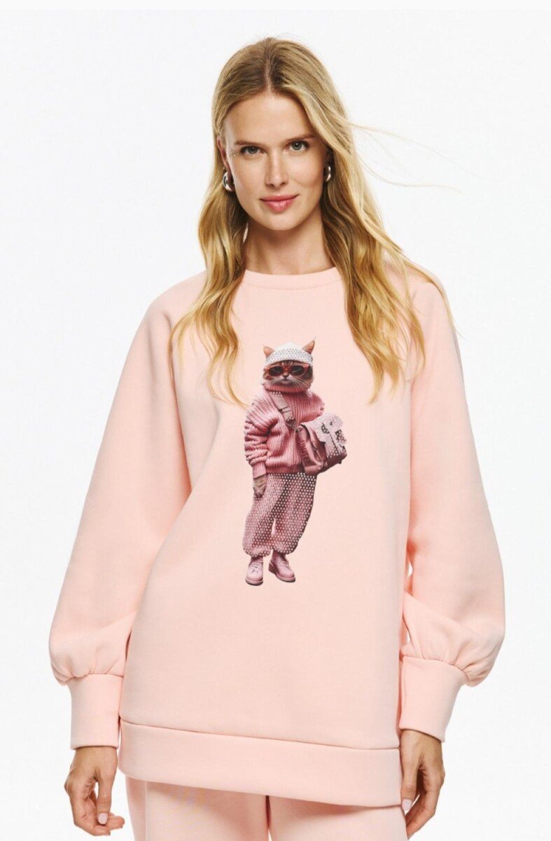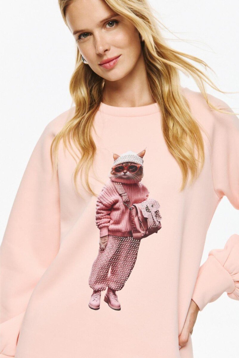 Φούτερ Μπλούζα Με Γάτα Και Στρας – Ροζ