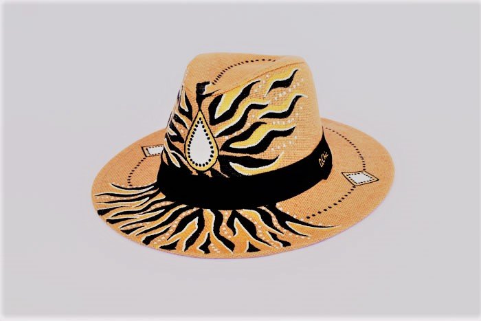 Χειροποίητο ψάθινο μπεζ σκούρο καπέλο τύπου παναμά ζωγραφισμένο στο χέρι