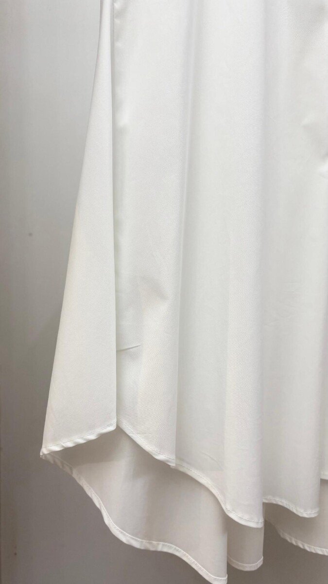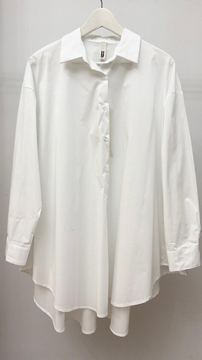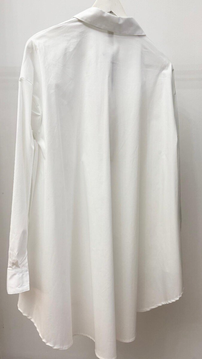 Λευκό πουκάμισο oversized μακρύ και ασύμμετρο και έντονα πιο φαρδύ στο κάτω μέρος