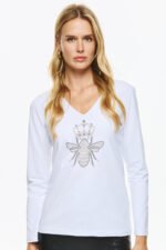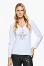 Μακρυμάνικη μπλούζα με V λαιμόκοψη διακοσμημένη με εντυπωσιακό στράς σχέδιο στο μπροστινό μέρος.