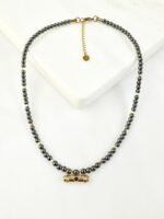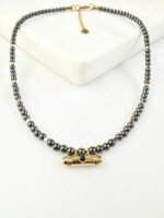 Κοντό Κολιέ Με Αιματίτες Και Στοιχείο Μπαμπού