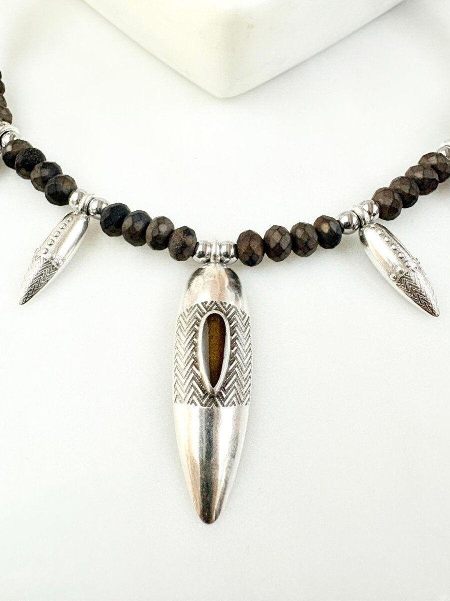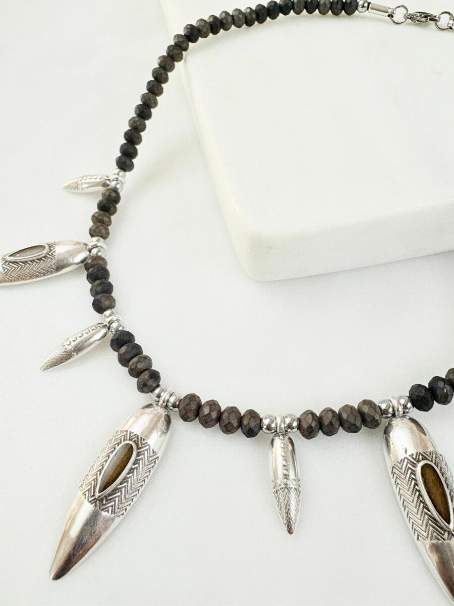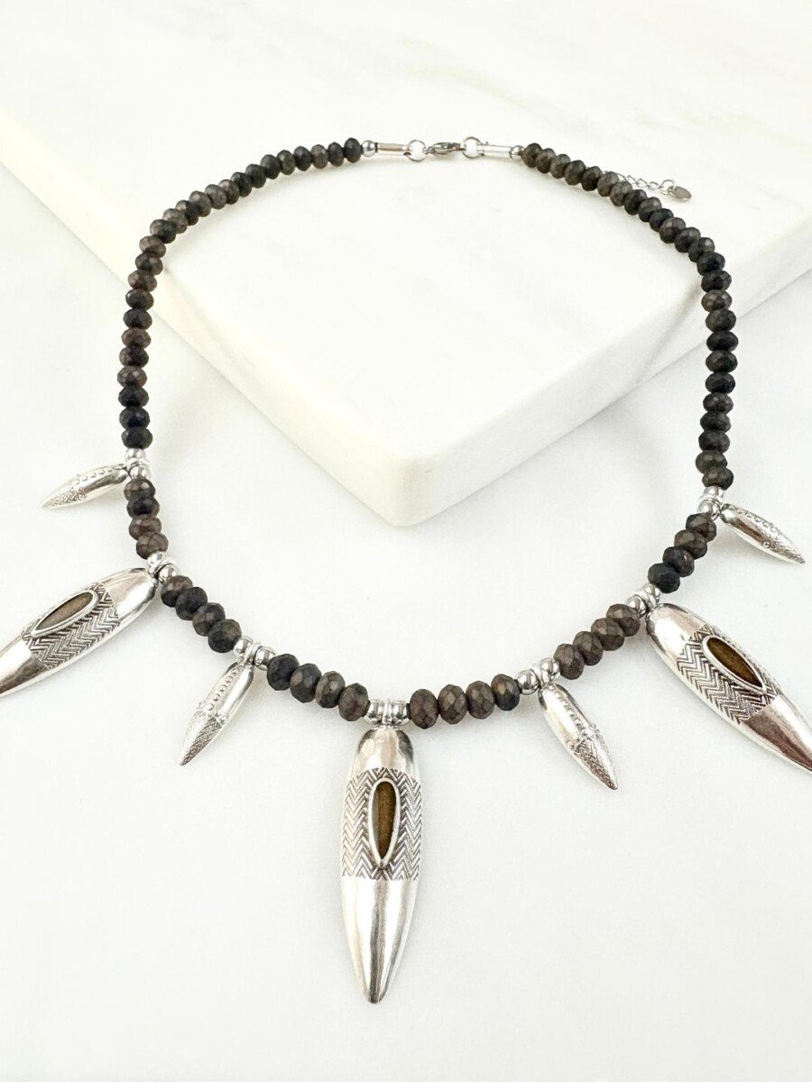 Κοντό Κολιέ Με Αιματίτες Και Στοιχείο Με Μάτι