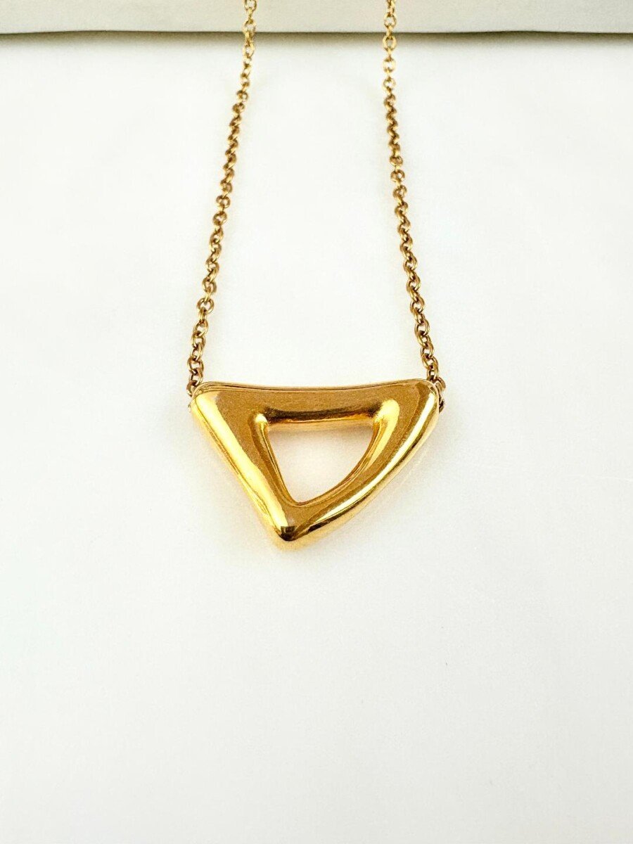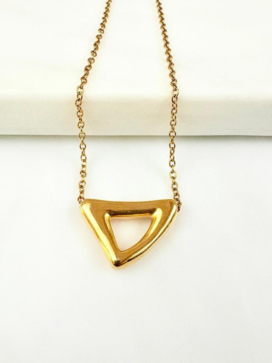 Κοντό κολιέ από ατσάλινη  επίχρυση αλυσίδα και μεταλλικό ζάμακ οργανικό τρίγωνο 24Κ επίχρυσο