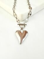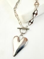 Κολιέ από ατσάλινη  εντυπωσιακή φαρδιά αλυσίδα και ατσάλινη καρδιά με ιδιαίτερο κούμπωμα