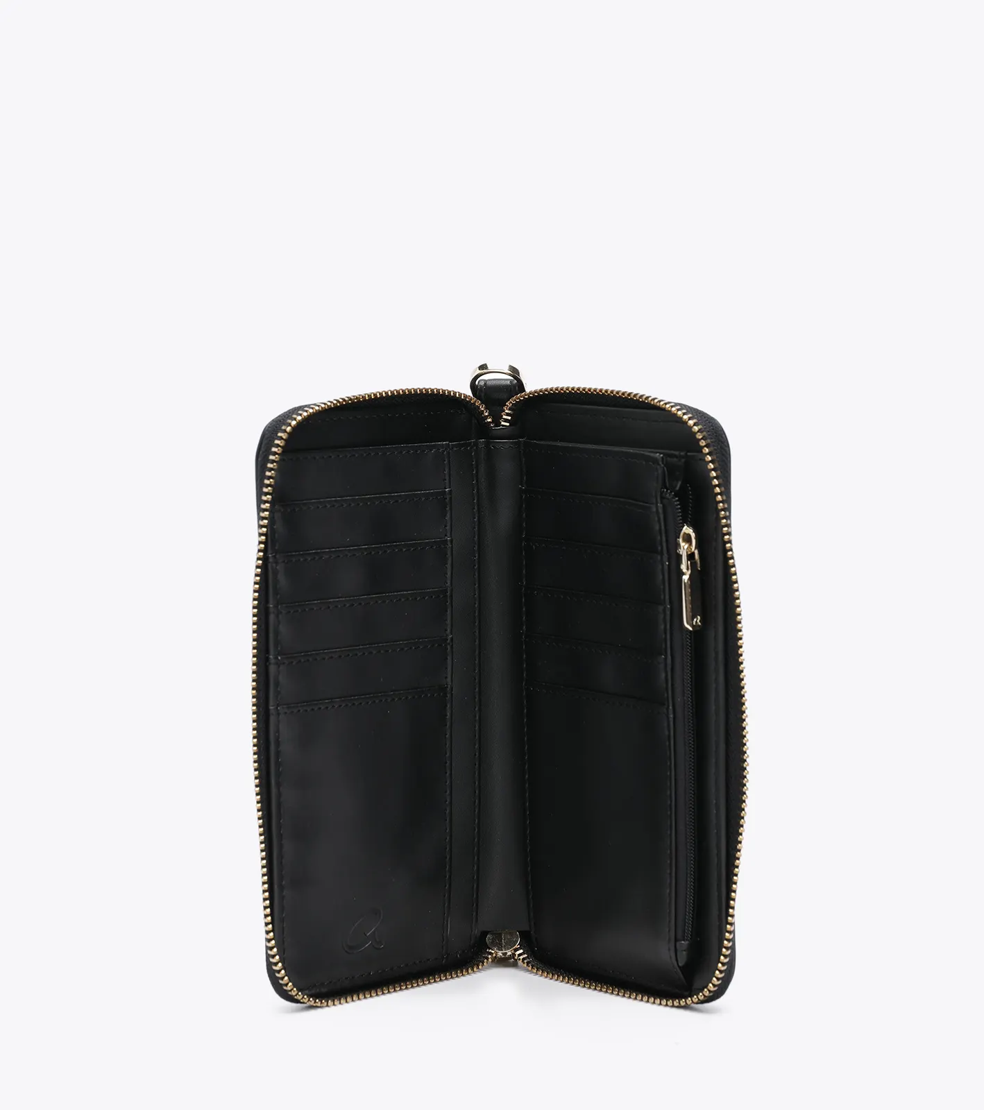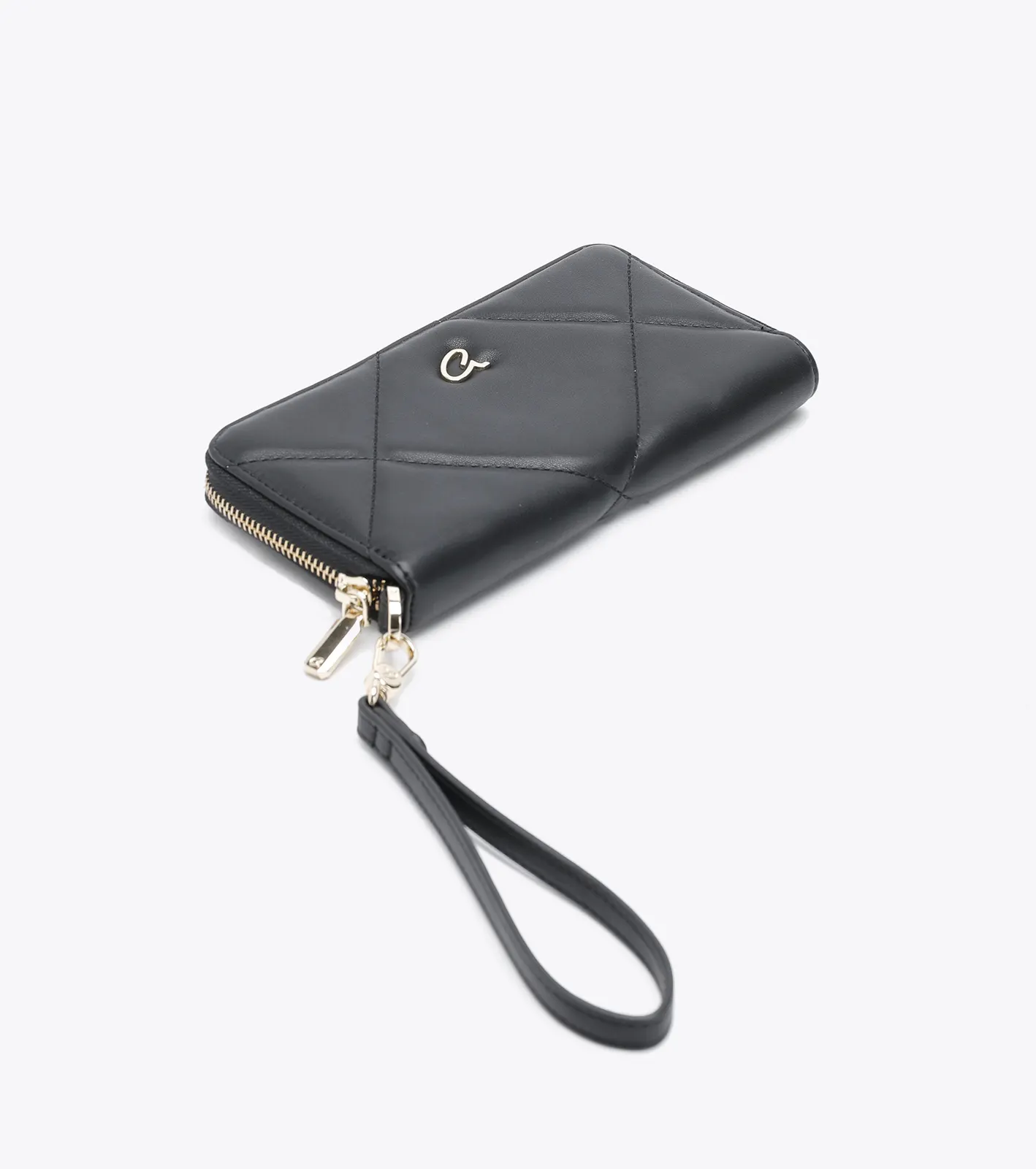 Γυναικείο πορτοφόλι Sissel με ραφές. Είναι κατασκευασμένο από τεχνόδερμα με μαλακή υφή και διαθέτει κλείσιμο με χρυσό μεταλλικό φερμουάρ. Εσωτερικά περιέχει πλαϊνή θέση για χαρτονομίσματα, πολλαπλές θέσεις για κάρτες και θήκη με φερμουάρ. Συνοδεύεται από λουράκι χειρός για ευκολία στο κράτημα