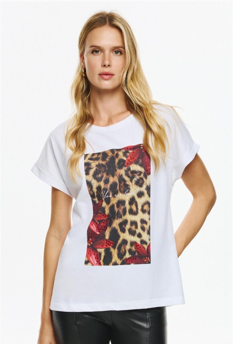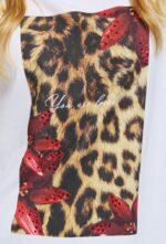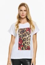 Κοντομάνικη Μπλούζα Με Αnimal Print Και Κόκκινα Λουλούδια