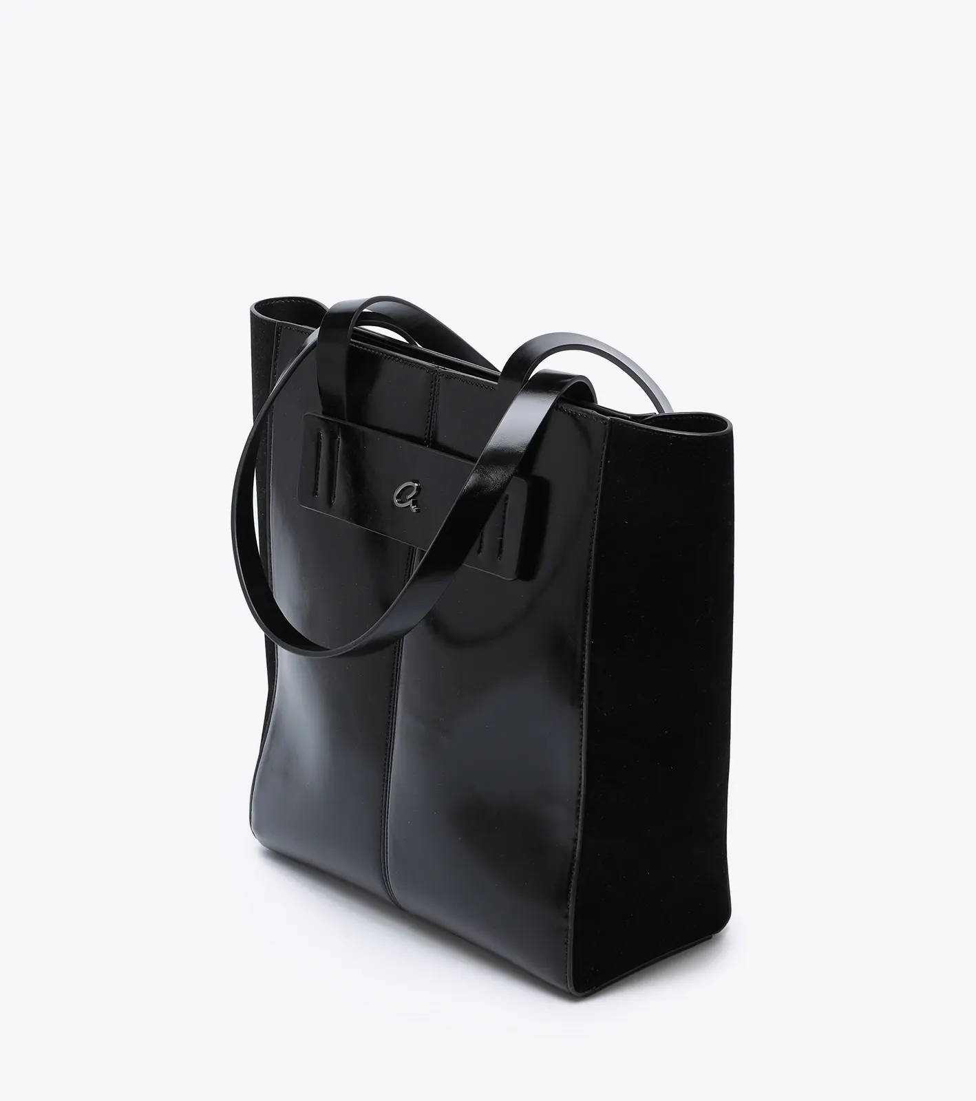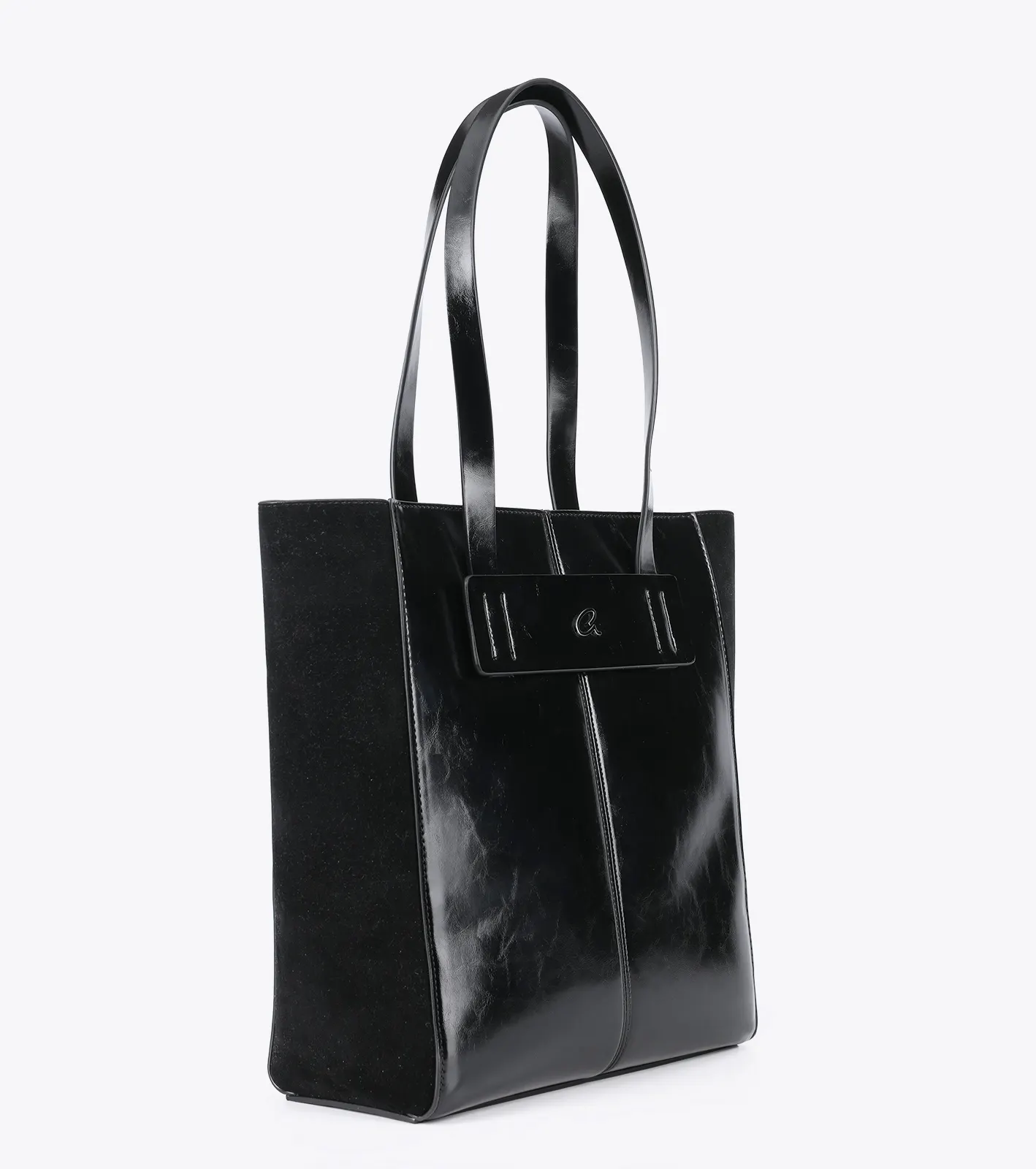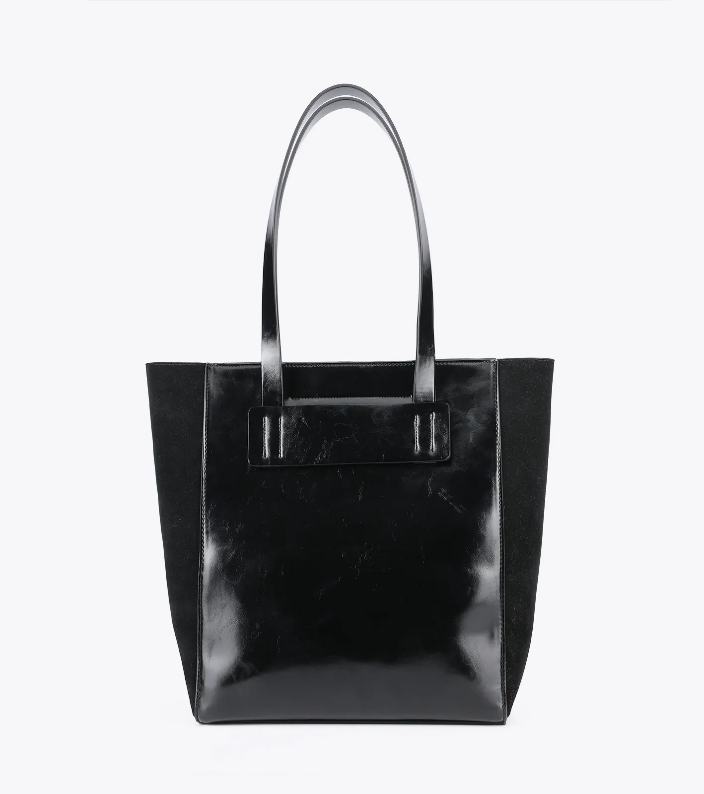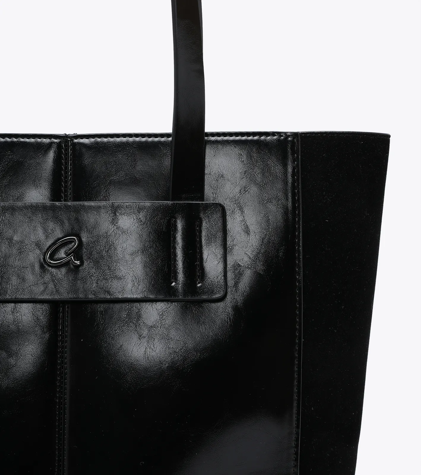 Γυναικεία τσάντα ώμου Catia με διπλά χερούλια. Είναι κατασκευασμένη από υψηλής ποιότητας τεχνόδερμα, με λεία υφή και λεπτομέρειες σουέτ στα πλαϊνά. Εσωτερικά διαθέτει τσεπάκι με φερμουάρ, για οργάνωση μικρών αντικειμένων. Εξωτερικά διακοσμείται με ραφές και μεταλλικό στοιχείο ‘a’. Κλείνει με φερμουάρ. Μία ιδιαίτερα ευρύχωρη τσάντα, ιδανική για καθημερινή χρήση.