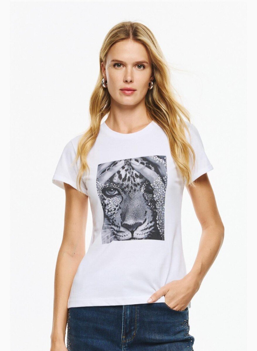 Κοντομάνικη Μπλούζα Με Ασπρόμαυρη Τίγρη