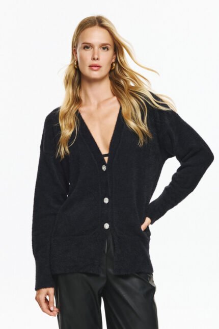 Πλεκτή Ζακέτα Με Στρασένια Κουμπιά