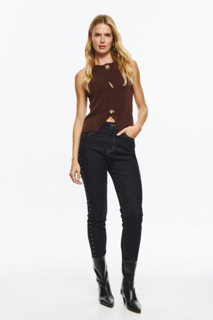 Πλεκτό Γιλέκο Με Χρυσά Κουμπιά